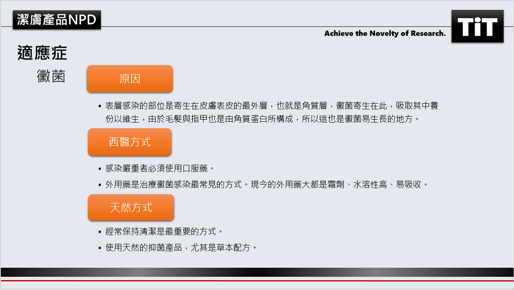 台灣創新技術能夠針對客戶的需求,開發溫和不刺激、無化學添加的抑菌潔膚產品。